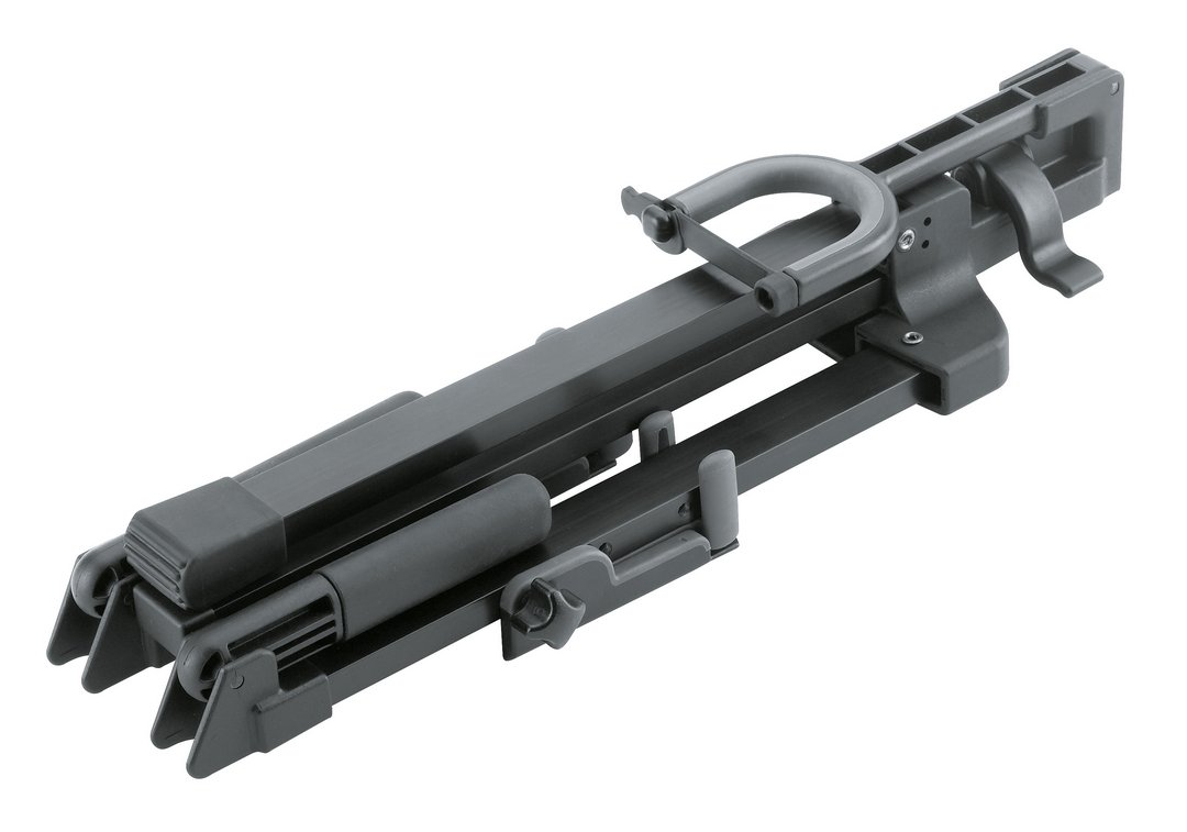 Compact, stable aluminum violin stand. Fully height adjustable instrument support arms can be adjusted to fit a variety of violin sizes. The instrument support arms are lined with soft plastic material to protect the instrument finish. Height adjustment using a non-slip clamping lever. The solid yoke has a safety lock to provide extra protection. Integrated bow holder.