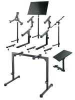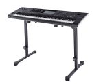 Its compact steel tubing construction and large round levelling end caps make this attractive keyboard stand significantly more stable. Two-sided spring-loaded locking screws make precision height adjustment easy. The support arms can be adjusted to suit the size of the keyboard. When folded, the table is impressively flat. The design of this table matches the piano benches 14080, 14081, 14085, 14086 and 14087. An optional extra are the stackers 18811 for a second level and 18822 for a third level, allowing the use of a second or third keyboard/laptop. Use the adapter 18814 to mount the universal holder 18817 easily and quickly.