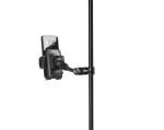 With this universal holder your smartphone is always within reach. The holder is suitable for all flat devices with a width of 60 to 84 mm. The operation is simple and fast. Insert smartphone – press clamping jaws together – done. The device is released at the push of a button. The clamping jaws with integrated rubber pads guarantee a secure hold. The exchangeable support bars with different depths can be individually adapted to the smartphone so that the function of the operating elements on the device is not impaired. Thanks to the flexible ball joint, the holder can be tilted up and down, and rotated 360°. The flexible support arm with a length of 100 mm provides additional individual setting. A stable clamping element with an ergonomic knurled screw allows mounting on any tube up to 30 mm in diameter.