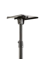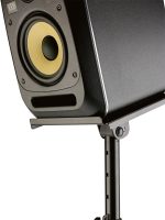 The modern studio monitor stand with a tiltable tray and a metal tripod base provides for stability and functionality. The three felt pads ensure noise filtration.