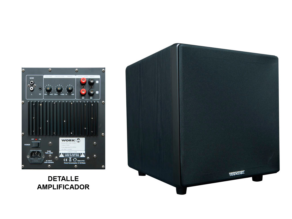 Self-powered subwoofer which integrates a 150W power amplifier and a 10” high performance woofer