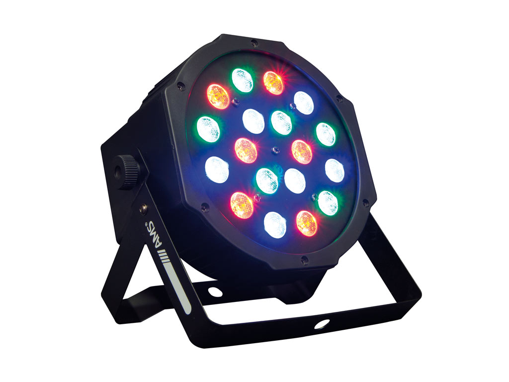 LED SpotlightLED projector with built-in battery consisting of 18 LEDs of 1W each divided between primary colors RGB and white. Its small dimensions and power make it suitable in indoor installations, replacing conventional light bulbs and provide brilliant illumination and enormous possibilities of different effects.BAT 54 integrates various operating modes: DMX, with 4/7 channel modes and different functions to control. Also, it incorporates different programs that can be executed both manually and by DMX and control the speed of execution. The inclusion of a microphone allows to execute these programs through the audio captured by this microphone. All modes of operation and configuration are performed with the interface on the rear panel that integrates buttons for navigation between menus and display to show the function in progress.The device has an integrated battery of 12V and 2600 mAh, which provides power to the BAT 54 between 3 and 4 hours.