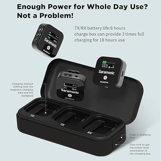 Adopt 2.4GHz wireless transmission technology, the Saramonic Blink900 B2R isan incredibly lightweight and easy-to-use wireless microphone that delivershigh-resolution sound quality. It is ideal for live streaming, vlogging, mobilejournalism and more.