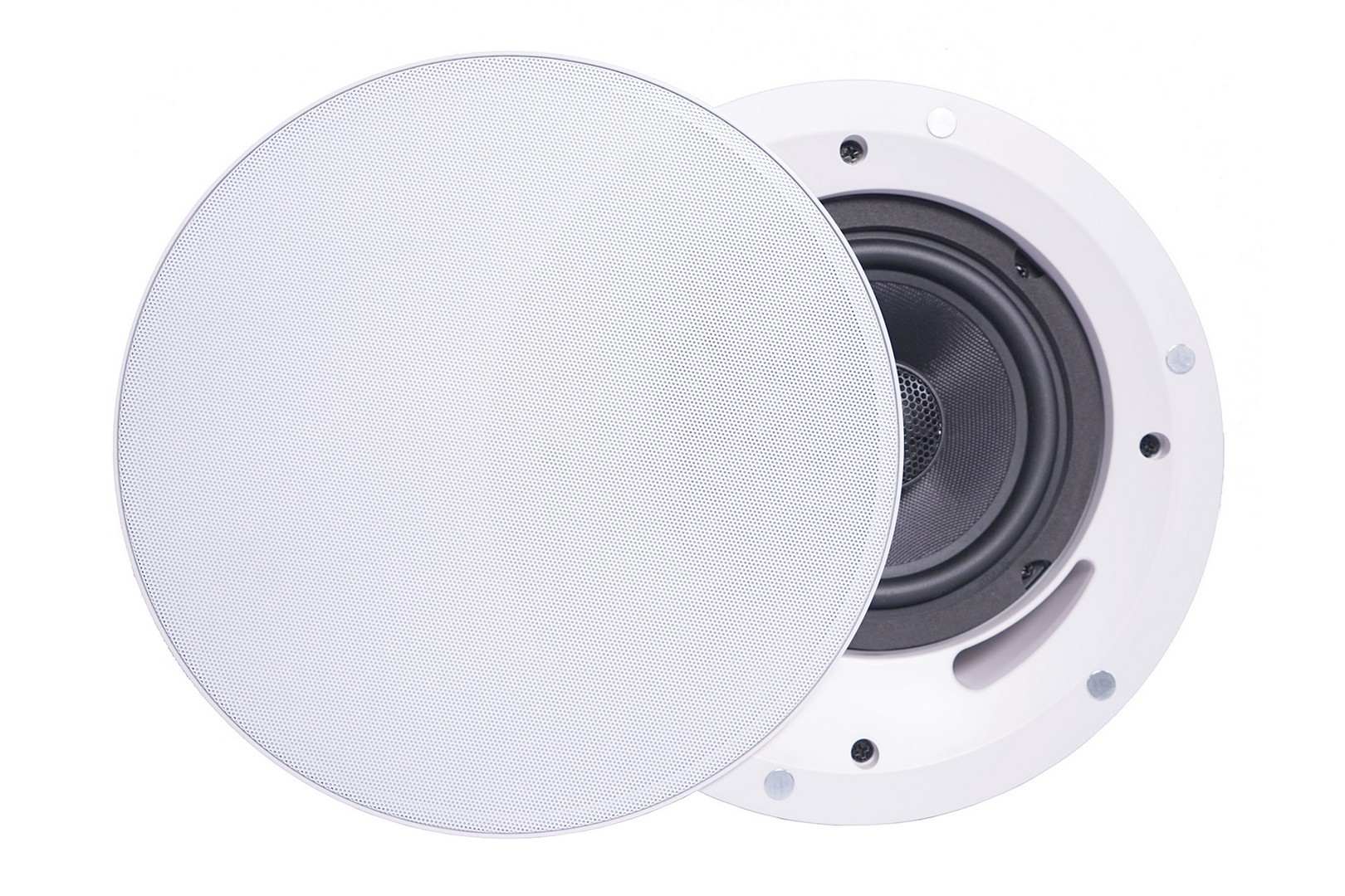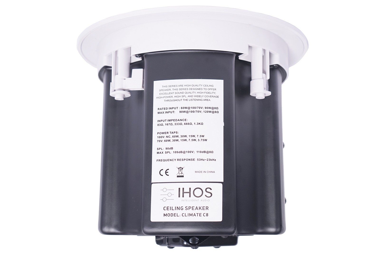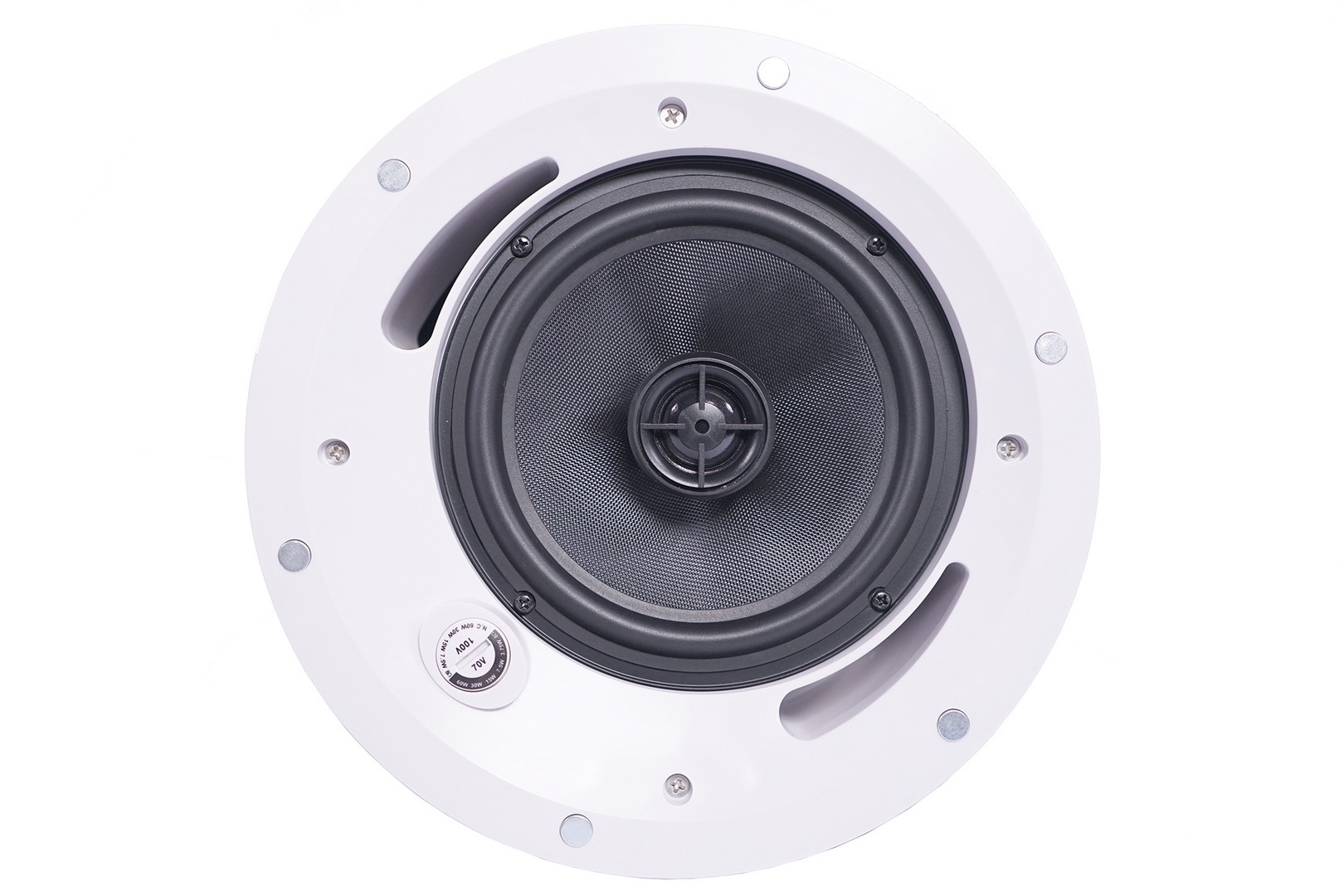 High quality ceiling speaker for pro audio and public address, 100/70V and 8Ω selecting switch, polypropylene woofer 6″, superior tweeter 1″, frequency response 53Hz -23kHz, 90 dB Spl, Hole size 230mm.