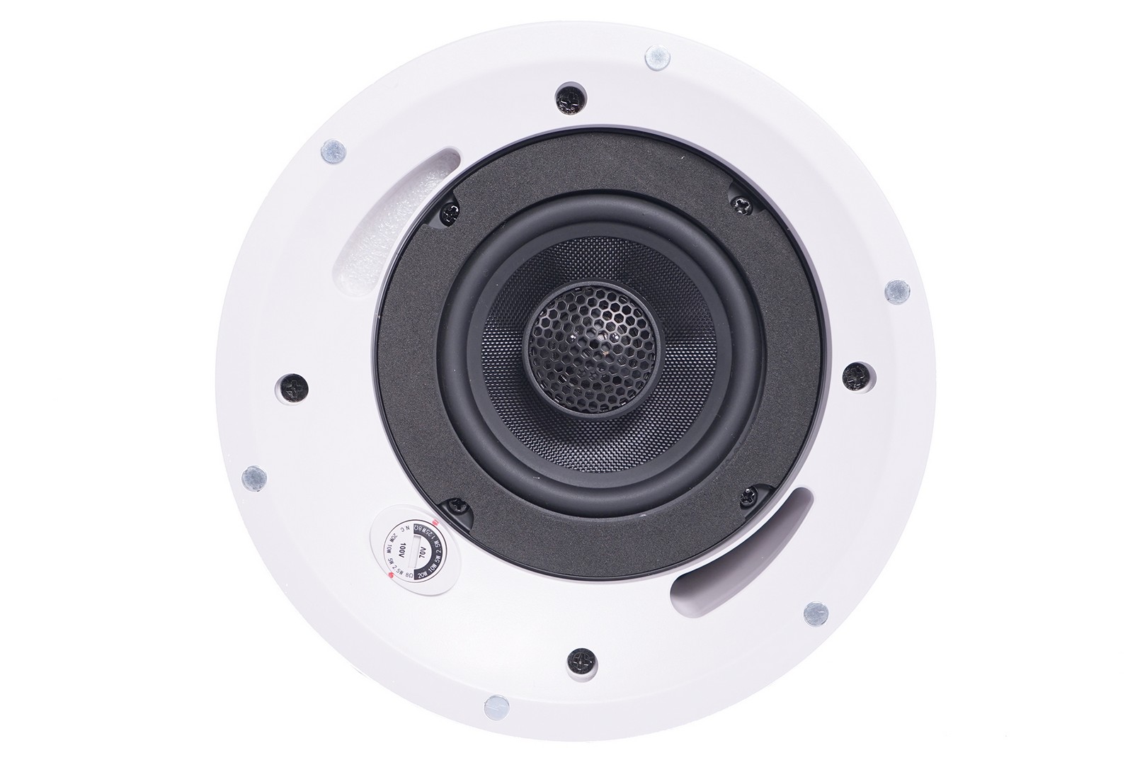 High quality ceiling speaker for pro audio and public address, 100/70V and 8Ω selecting switch, polypropylene woofer 4″, superior tweeter 1″, frequency response 80Hz -23kHz, 87 dB Spl, Hole size 175mm