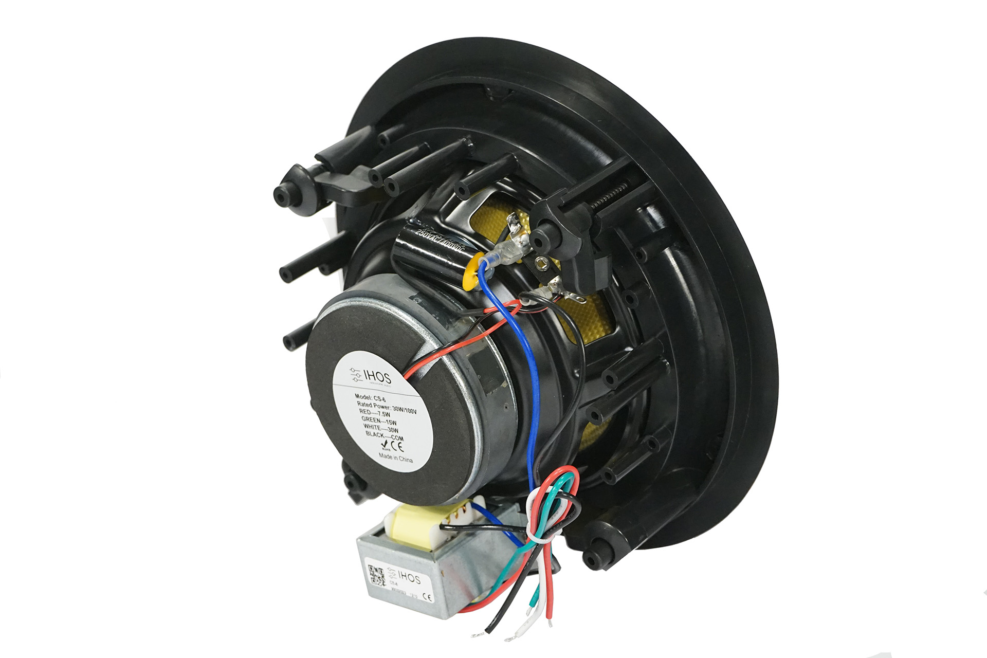 High-performance ABS Rimless ceiling speaker, 6″ coaxial Kevlar speaker driver, 100V line transformer, power at 100V 30Watt, crossover for better sound quality, SPL 1w/1m – 90dB, max SPL @ 1m – 103dB, freq. response 100Hz-20Khz, diameter 235x90mm, 1.8kg