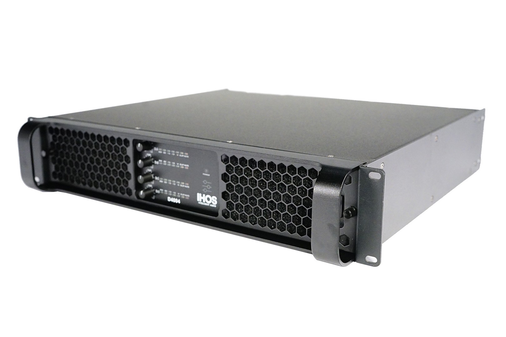D class high performance 4 channels amplifier, 4 x900 w/8ohms , 4 x1800w/4 ohms, XLR input, speakon output, led VU meter, temperature control fans, frequency responce 20Hz – 34Kz,adjustable VPL, 10kg.