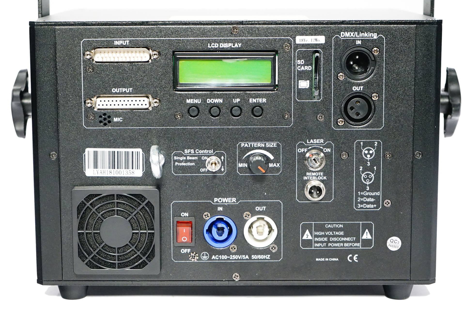 Professional Full Diode RGB Animation Laser, R:400mW + G:500mW + B:1600mW Analog Modulation (total2.5W), R: 635nm+G: 520nm+B:450nm, scanner25KPPS, ±20°