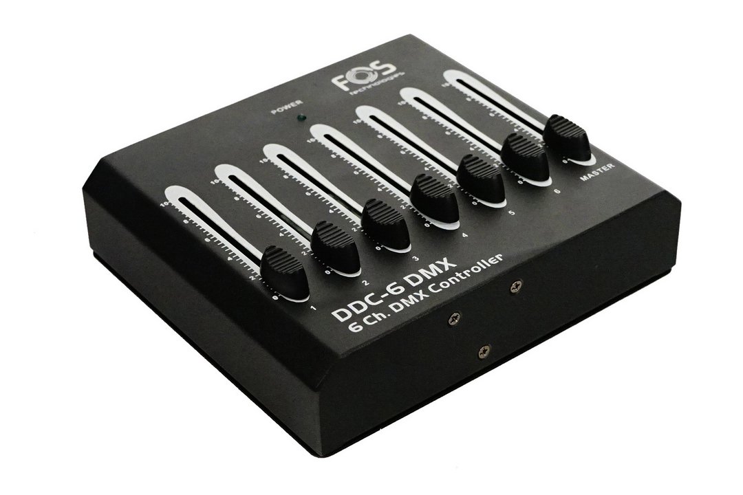 FOS 6CH DMX CONSOLE 6 Channels Dmx Controller, 6individual channel faders & one master fader. 6 DMX channels. Compact design & simple operation, DMX Output: 3 pin female XLR DMX connector.