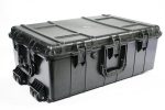 Weatherproof IP67 plastic case with wheels and folding handle for easy transport, pre cutted foam for general applications,