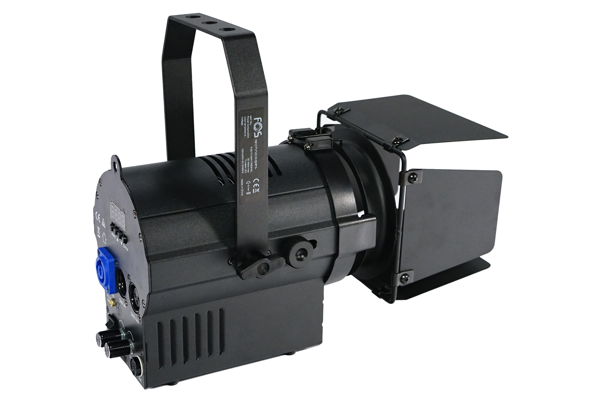 Mini Fresnel tunable white 100 watt LED ( 50W warm white + 50W cool white), 2700K – 6500K tunable, CRI 95, 25° – 80° manual zoom, Smooth dimming, flicker free, Super compact, easy for set up, 4-leaf rotatable barndoor included.
