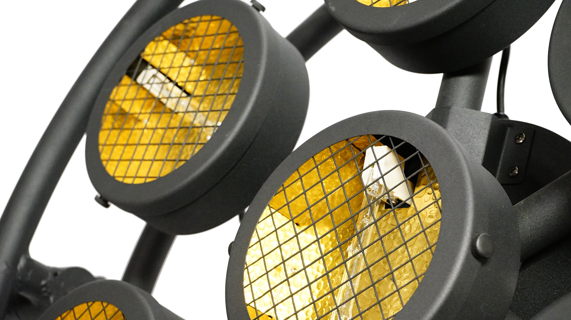 Retro Halogen with 7x300W lamps , Lamp life: 2000 Hours , DMX Linear Dimmer , 7 DMX ch , Pixel Control , Size 86×96.6x17cm , 12.5kg.