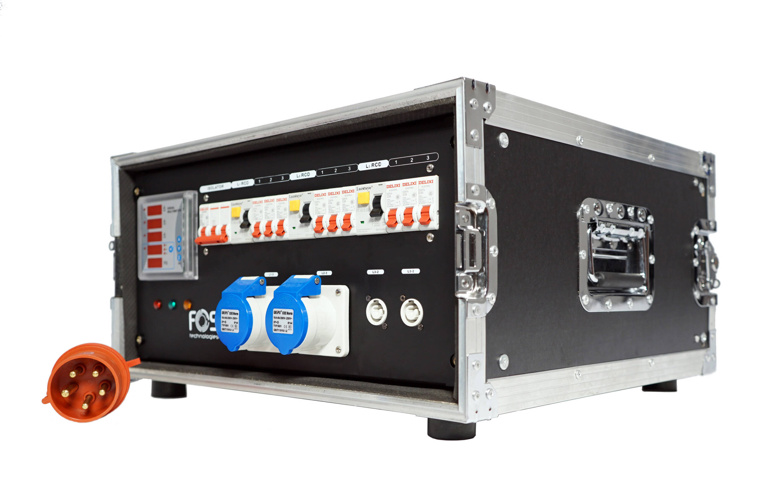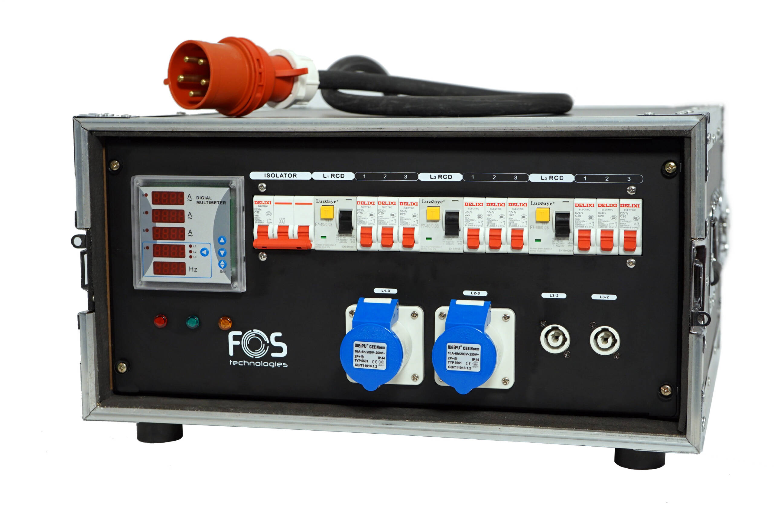 CEE Power Distributor Rack , Size: 6U, 1 x 5PIN 32A CEE input ,11 x Powercon Output , 11 x CEE 16A output , Three-phase Voltmeters.