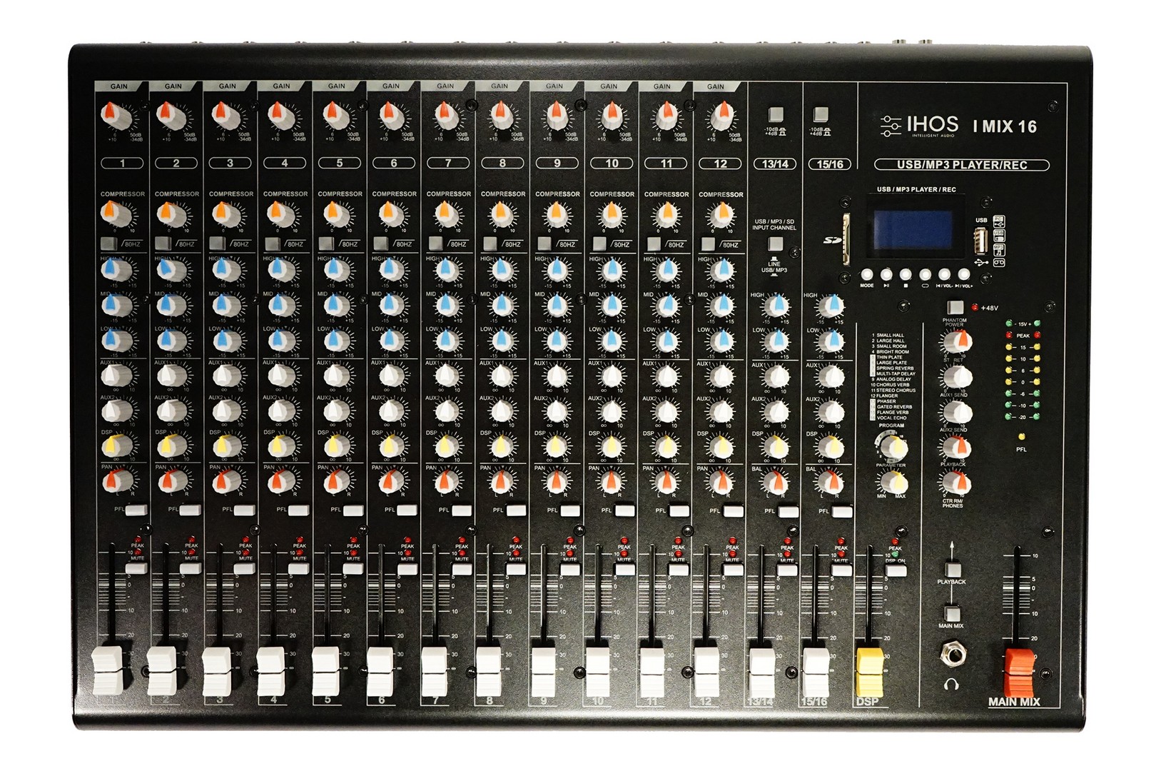 Compact, portable mixing console, 14 mono + 2 stereo input, 2 bus, USB/SD Player and Bluetooth, A/D&D/A converter sample freq .24-Bit,16 programs