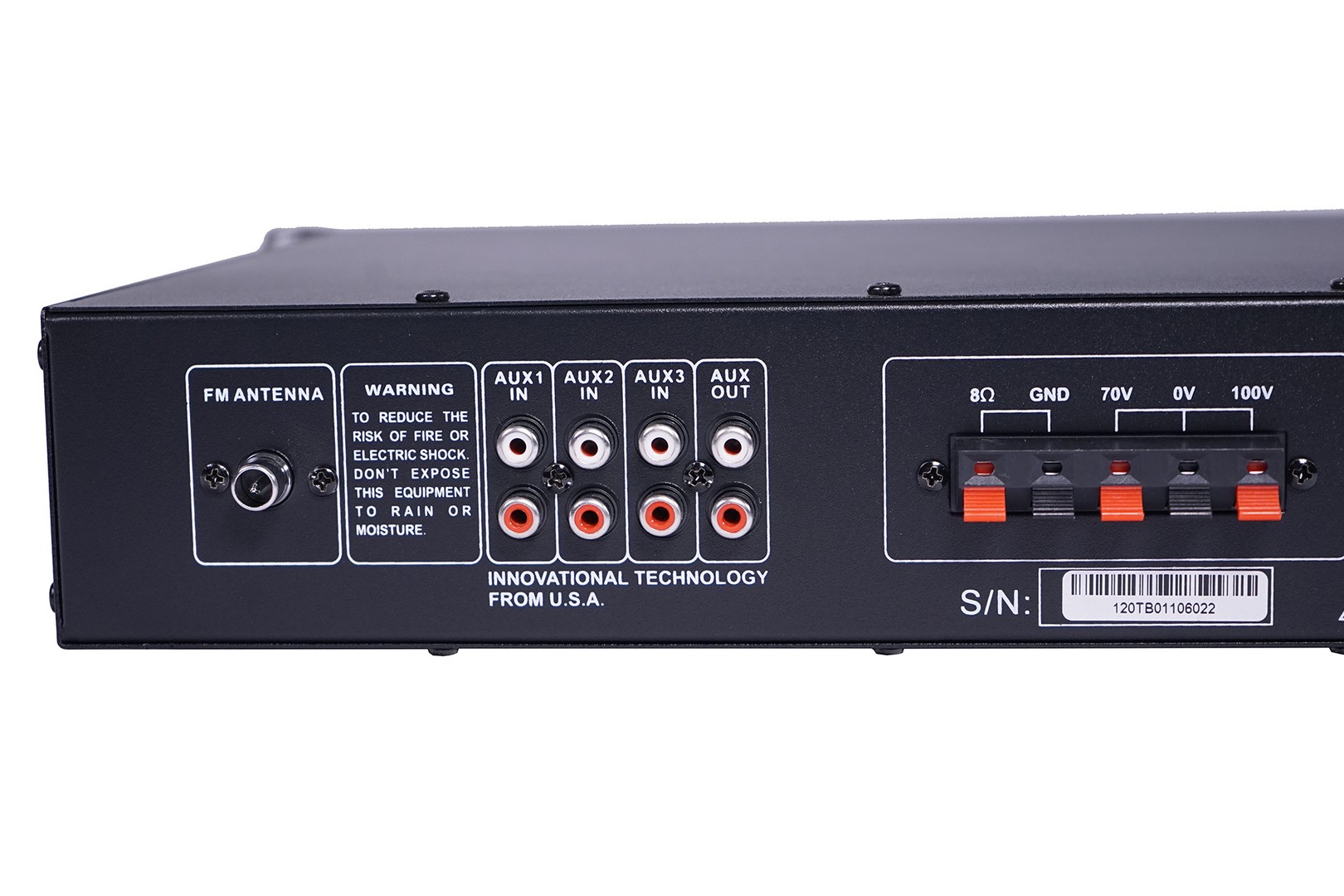 Public Address mixer amplifier 120w , 100V / 70V constant voltage output, 8 ohm constant resistance output, mp3, bluetooth, FM tuner ,USB interface,LCD screen, 3 line input, 2 mic input, 1 line output.Treble and Bass,IR control function