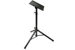 Durable tripod stand with solid flat table desk for supporting laptops, smaller controllers, mixers, lightweight studio monitors or speakers, projectors and similar devices, as well as notes. Stand has sturdy steel construction with powder coating and has adjustable height (920-1300 mm) and table desk angle. Maximum base width: 780 mm. Table desk dimensions: 350 x 320 x 10 mm. Maximum load: 10 kg. Black colour.