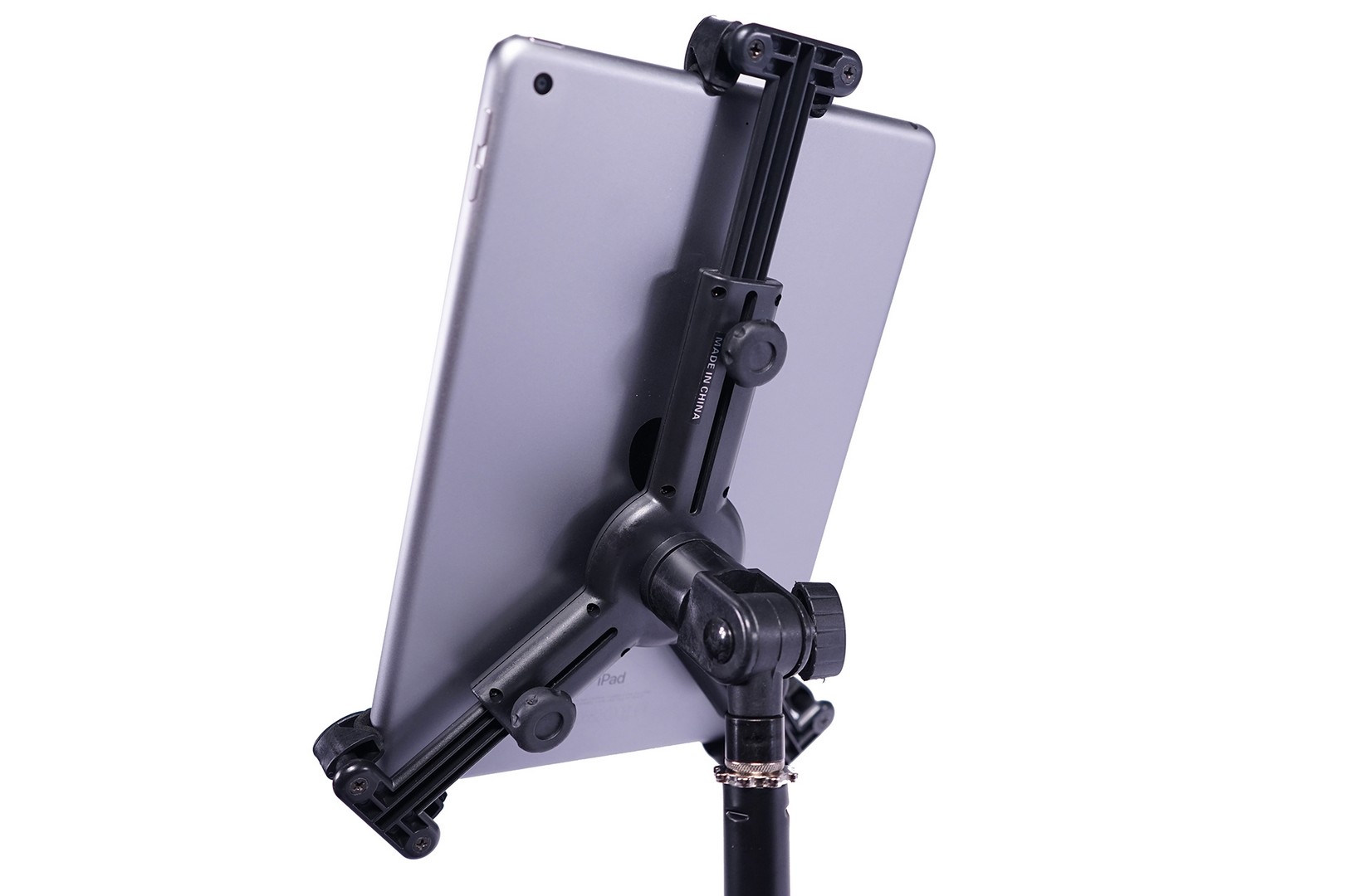 Professional tablet adaptor base, fits tablets 6-12 inch, suitable for 14-20mm tube, fits to mic stands.