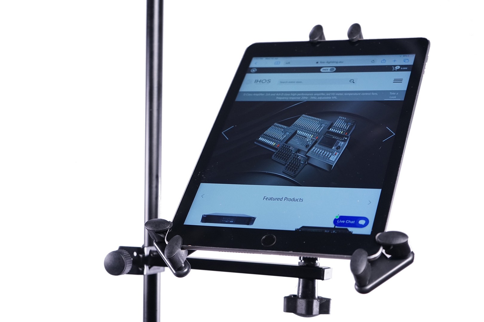 Professional tablet adaptor base, fits tablets 6-12 inch, suitable for 14-20mm tube, fits to mic stands.