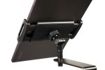 Universal stand for cell phone or tablet, adaptor for connection to mic stand, clip range: 125-190mm, 360° free rotation, horizontal rotation, black painted steel material, 2.1 kg.