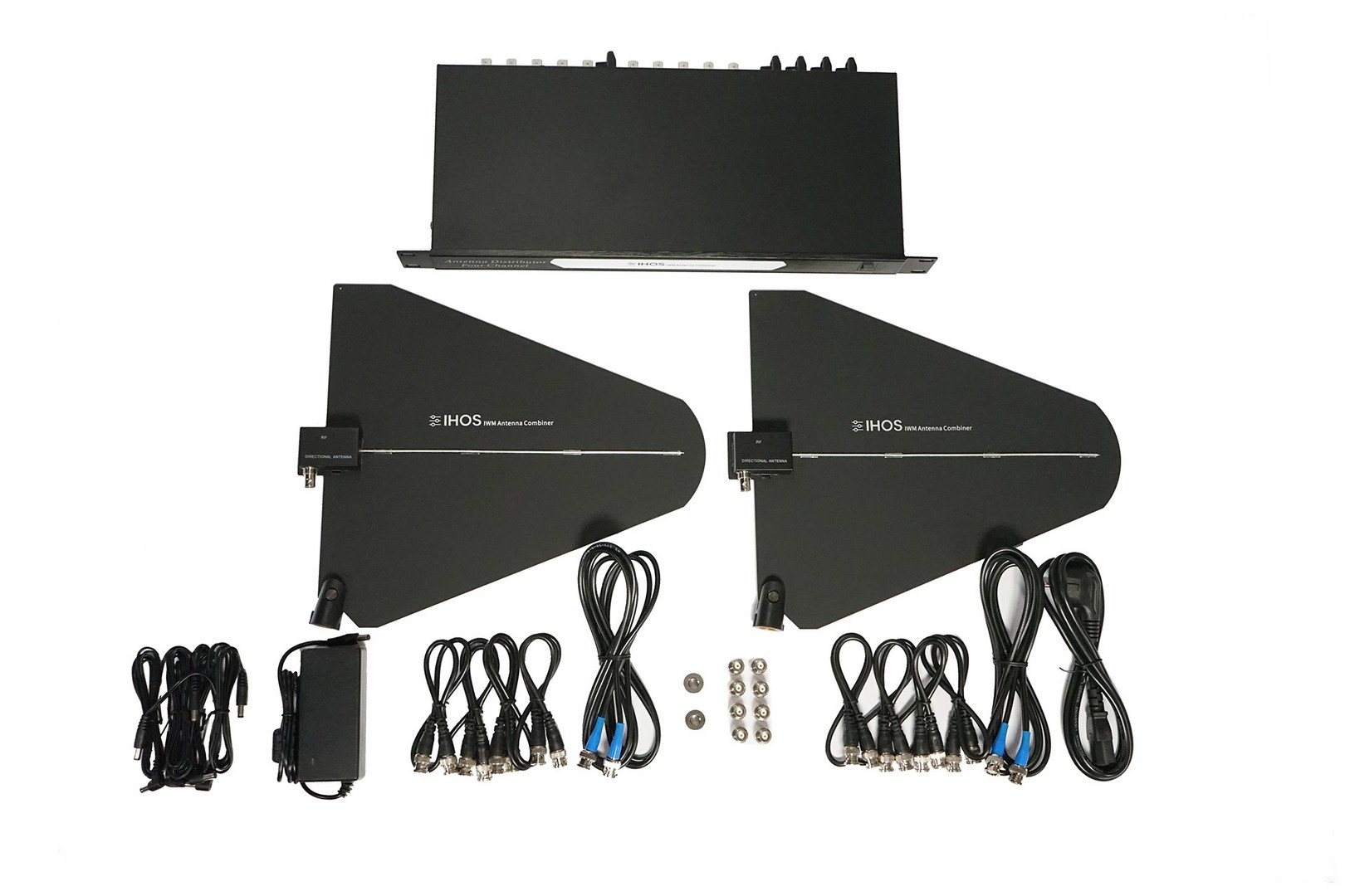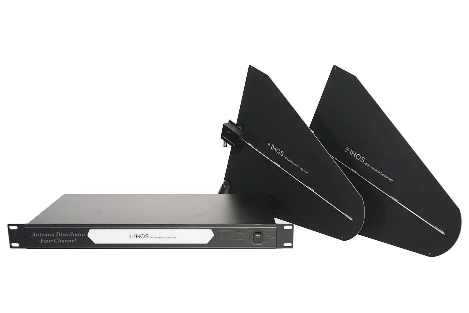Wireless microphones 4 channel Antenna distributor device, operating frequency 500Mhz-999Mhz, LPDA antennas, maximun 10dB gain, working voltage 8VDC,