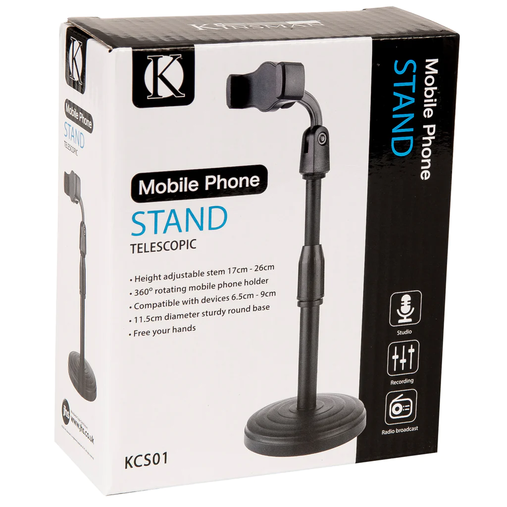 Constructed from high quality, robust materials, the KCS01 Kinsman mobile phone stand, is suitable for a host of applications, from watching videos hands-free, to online meetings and interviews. Â