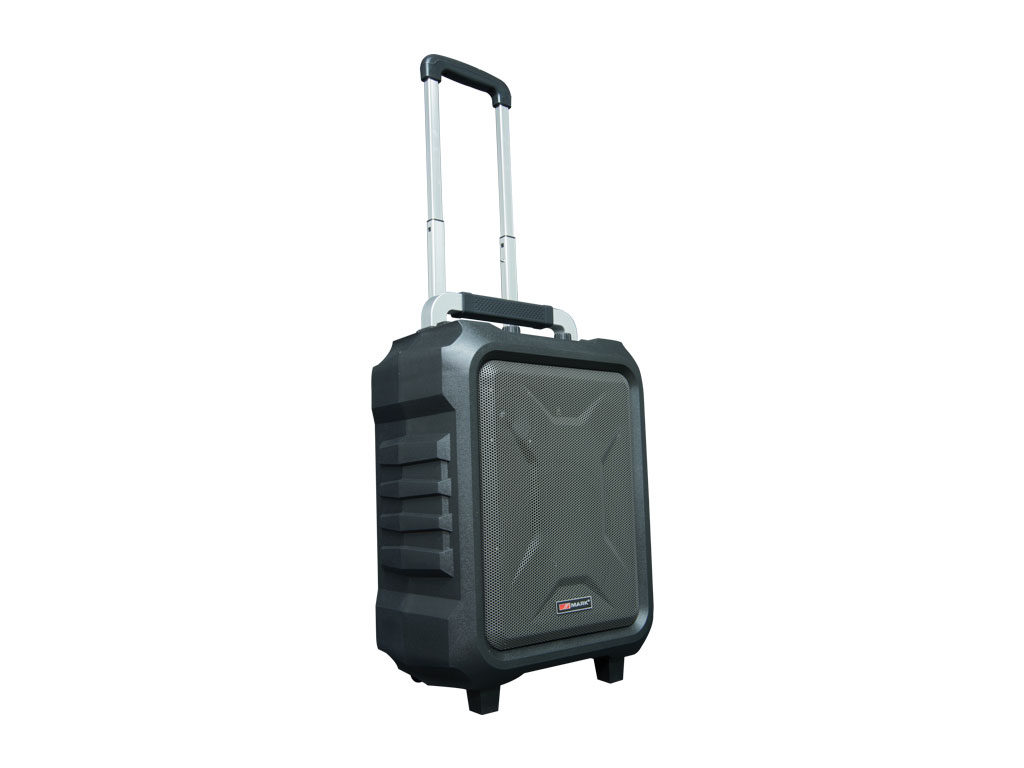 Portable self-powered system. Loudspeaker 8” + TWT 3”. Amplifier 30W. USB/microSD/BT, radio FM. Battery.
