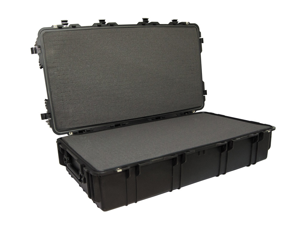 ABS case. Inner protective foam. IP 67. Internal 1066 x 383 x 559 mm.