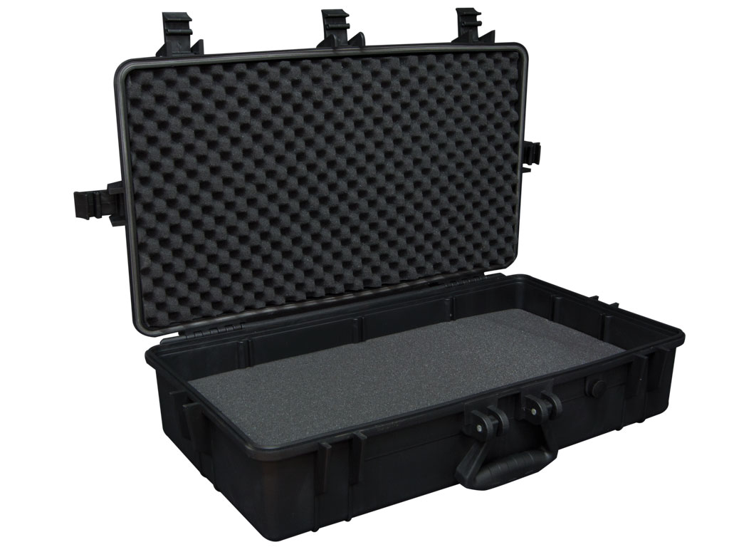 ABS case. Inner protective foam. IP 67. Internal 647 x 165 x 350 mm.