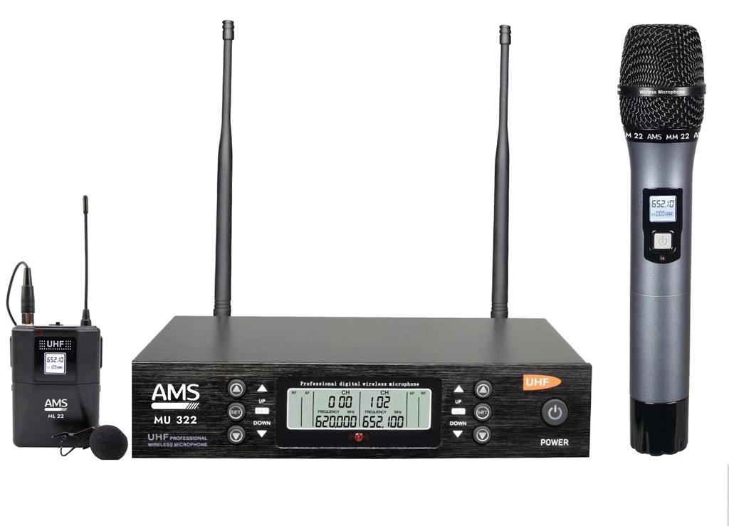 MU 322 LV M is a wireless system for the UHF band. It has 200 channels and its synchronization is fast and intuitive, simply by bringing the flask close to the receiver. It incorporates 1 handheld microphone, 1 lavalier microphone and 1 bodypack with an informative LCD display. It has independent volume and display showing AF, RF, channel and transmit frequency levels. Each channel has a balanced output and a mixed output of both channels.
