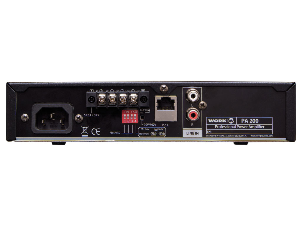WORK Amplifier. 2x100W 8 ohm/70/100V. RJ45 (RS 485 commands)