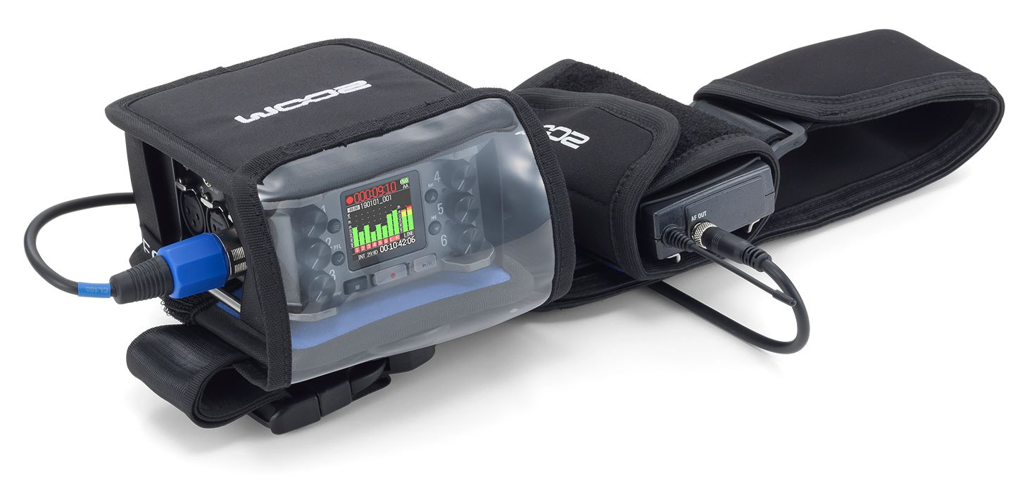 The PCF-6 case includes two separate pieces—one for your field recorder and another for smaller items such as a wireless transmitter. The simple strap design allows you to add as much gear as you need, while giving you the flexibility to hold your F6 around your waist, around your neck, or over the shoulder.