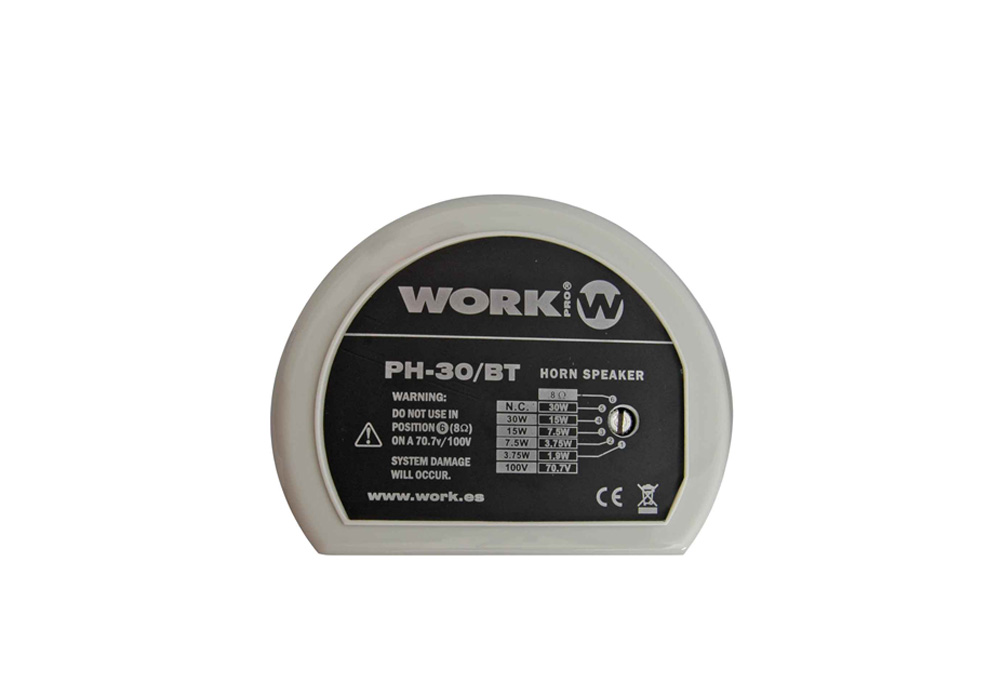 Exponential horn speaker. 30 W @ 8 Ohm. 30/15/7.5/3.75 W @ L100V. Ø246 mm. ABS plastic