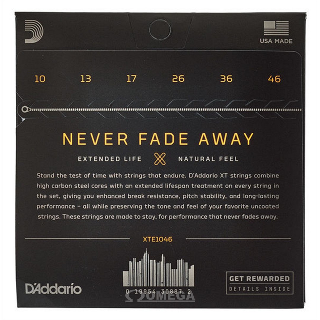 XT Nickel coated electric guitar strings offer enhanced break resistance, better pitch stability, and longer-lasting performance than standard electric strings. The XT coating, applied to each string in the set, delivers advanced corrosion resistance, while still retaining the bright tone and natural feel of the uncoated string. Beneath the coating, XT Nickel are made with a NY Steel core, nickel-plated steel wrap wire, and Fusion Twist technology, resulting in added resilience and tonal versatility, excellent for a wide range of musical styles. 10-46 Regular Light is our most popular XT gauge, providing a nice balance of tone and playability.