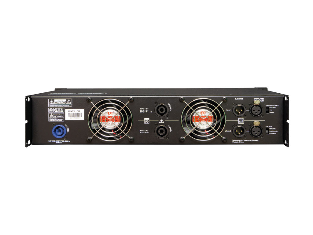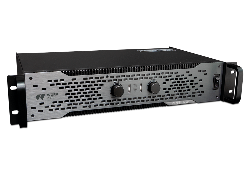 Zenith 1700 is a 2-channel 850W @ 4 Ohm professional audio amplifier